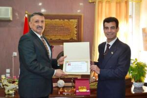 وفي نهاية المحاضرة قدم عميد الكلية الاستاذ الدكتور خالد فهد علي الى الضيف شهادة تقديرية و درع الكلية واقترح على الدكتور الضيف على ضرورة فتح افاق للتعاون العلمي و البحثي مع الجامعات التشيكية و الماليزية من خلال الدكتور رشك الذي اكد بدوره انه سيعمل جاهدا على تحقيق ذلك.