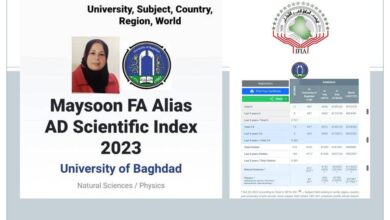 أ.د. ميسون الياس، الأولى في التصنيف العالمي حصلت أ.د. ميسون فيصل أحمد الياس ، عضو لجنة التربية والتعليم العالي والبحث…