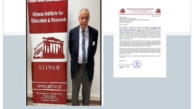 الانصاري رئيساً لمجموعة البيئة في مركز أثينا أثناء المؤتمر العالمي الخاص بالتغير المناخي والمياه الذي أقامه مركز أثينا للتعليم والبحث…