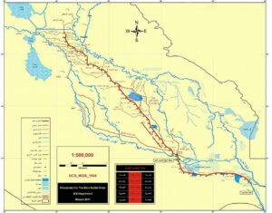 (هـ) عدم اعتماد الآلية المهنية التي تتطلبها عملية توزيعات المياه وإلغاء دور سعاة الري (الكُرّاخ) المسؤولين عن تنظيم توزيعات المياه الحقلية وعدم استخدام قواعد بيانات محدثة (سجلات التسكام) ومنح حصص مائية لأراضي خارج حدود الإرواء وإغمار أراضي ضحلة واسعة كاهوار خارج محددات الخطة الإستراتيجية التي اشترطت فرضية توفر موارد مائية سنوية (35 م.م. /سنة) وتخصيصات مالية على مدى 20 عام بواقع 4 مليار دولار / سنة لتحسين وصيانة مشاريع الري.