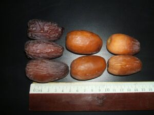ب- عذوق ذات الشماريخ الطويلة تضم 104 إلى 110 شمراخ وكل شمراخ يحتوي على 55 إلى 57 حبة تمر وطول الشمراخ 60-65 سم.
