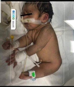 والحالة الثانية هي ولادة طفلة في مستشفى الزهراء في محافظة النجف وهي ولادة نادرة تسمى بمتلازمة حوريه البحر (sirenomelia) حيث وضح الجراح المختص لجراحة التشوهات الخلقية انه عيب خلقي نادر يلتصق فيه ساقي الجنين معا، مما يعطي مظهر ذيل حورية البحر واكد ان المولودة لا زالت على قيد الحياة.