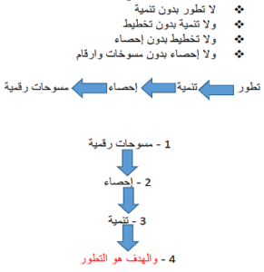 في التخطيط هناك حقيقة لأربعة امور مترابطة ومتلازمة ومتسلسلة وهي : لا تطور بدون تنمية ، ولا تنمية بدون تخطيط ، ولا تخطيط بدون احصاء ….