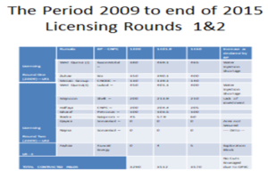 قامت وزارة النفط بالإعلان عن جولة التراخيص الاولى حيث يكون تتنافس الشركات بعد تاهلها على حقول نفطية وغازيةباعتماد عاملين هما