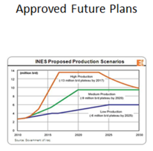 عام 2013 كلفت وزارة النفط شركة بووز الاميركية باجراء دراسة للفترة من 2013—2030حيث اقترحت ثلاثة سيناريوهات لانتاج النفط كما في الشكل ادناه