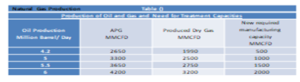 | إنتاج النفط مليون برميل / يومياً | الغاز المصاحب مليون قدم مكعب / يوم | الغاز الجاف المنتج مليون قدم مكعب / يوم | طاقة التصنيع الجديدة المطلوبة مليون قدم مكعب / يوم |
