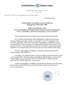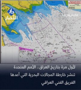 أما بالنسبة للكويت، فإننا نؤكد – بعيدًا عن الضجيج الإعلامي والتهديدات الفارغة التي صدرت عن الحكومة الكويتية – أن الوثيقة التي تؤمّن حقوق العراق السيادية بموجب القانون الدولي والمرتكزات التاريخية قد تم تثبيتها كوثيقة رسمية من قبل وزارة الخارجية العراقية، كما هو مرفق طيًّا، ولا يجوز التراجع عنها تحت أي ظرفٍ كان لدواعٍ وطنية.